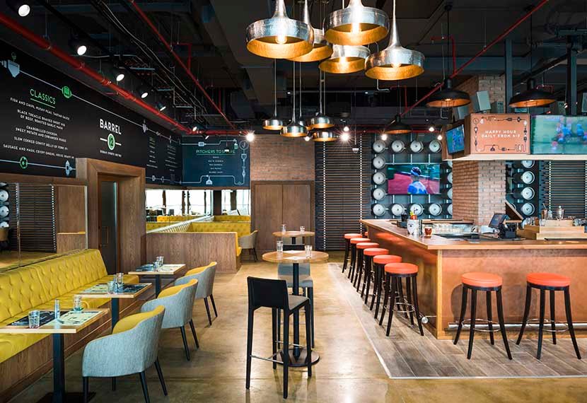 Perched on the vibrant trunk of The Palm Jumeirah, Barrel 12 was envisioned as a modern American-style sports bar that would seamlessly blend relaxed hospitality with elevated casual design. The project brief called for a full architectural and interior concept that delivered a distinctly urban energy within a coastal resort setting—inviting residents, tourists, and sports fans alike.