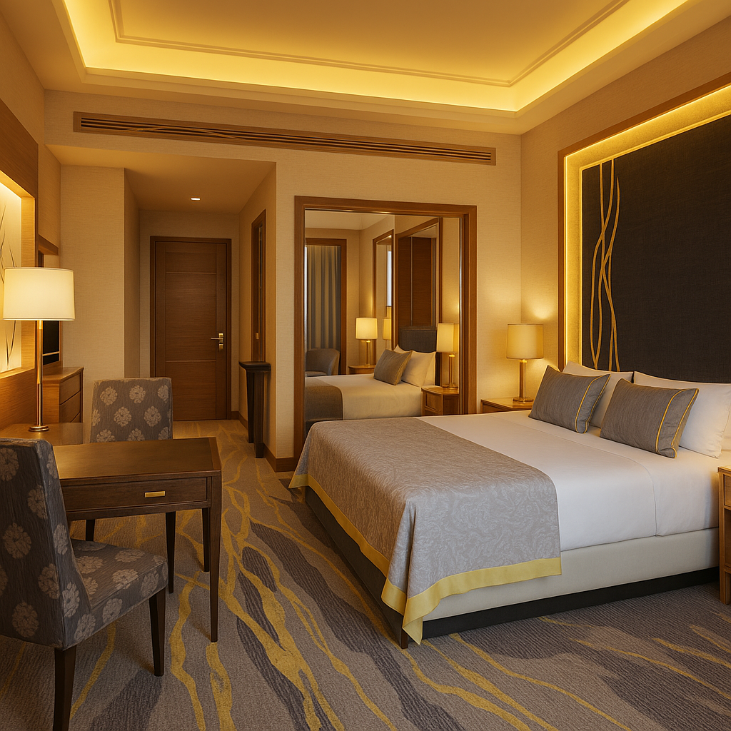 Commissioned for both architecture and interior design, SBD approached the project with a vision to harmonize grandeur and serenity. The hotel includes five signature restaurants, a grand ballroom, dedicated wedding facilities, and a full-service spa and wellness center, all designed to meet the evolving expectations of domestic and international guests.