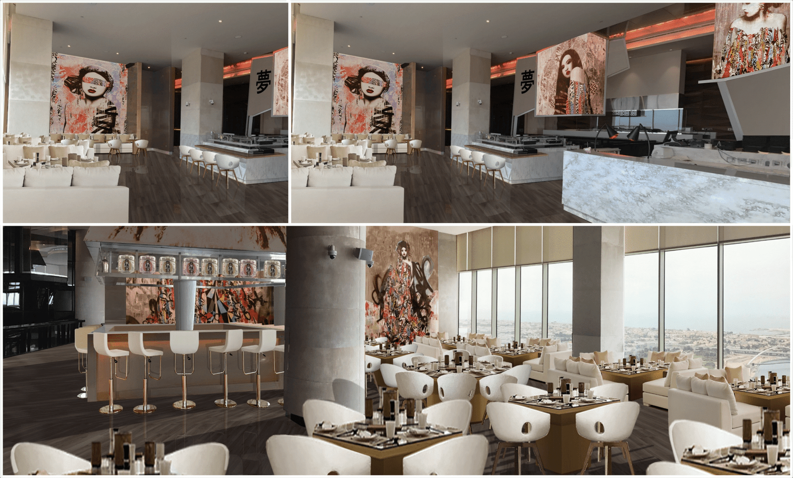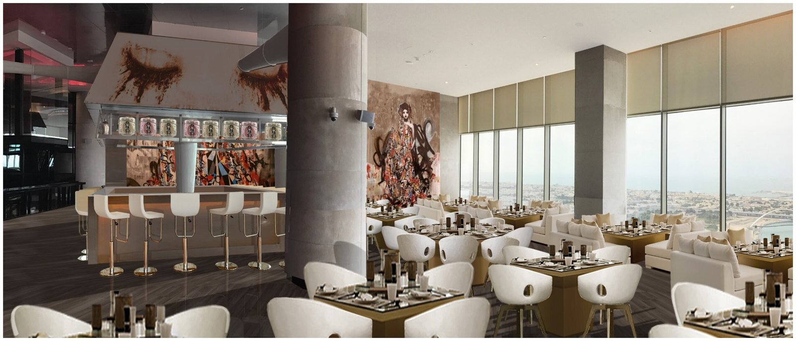 From the moment guests enter, the architecture sets a tone of confident minimalism rooted in East Asian design principles. Structural verticals—reflected in the commanding cylindrical columns—anchor the space in calmness and discipline, while floor-to-ceiling glazing dissolves boundaries between interior and horizon. The architecture employs expansive fenestration not merely for function, but to curate a sensory engagement with time, light, and place. This interaction with Dubai’s skyline is both immersive and contemplative.