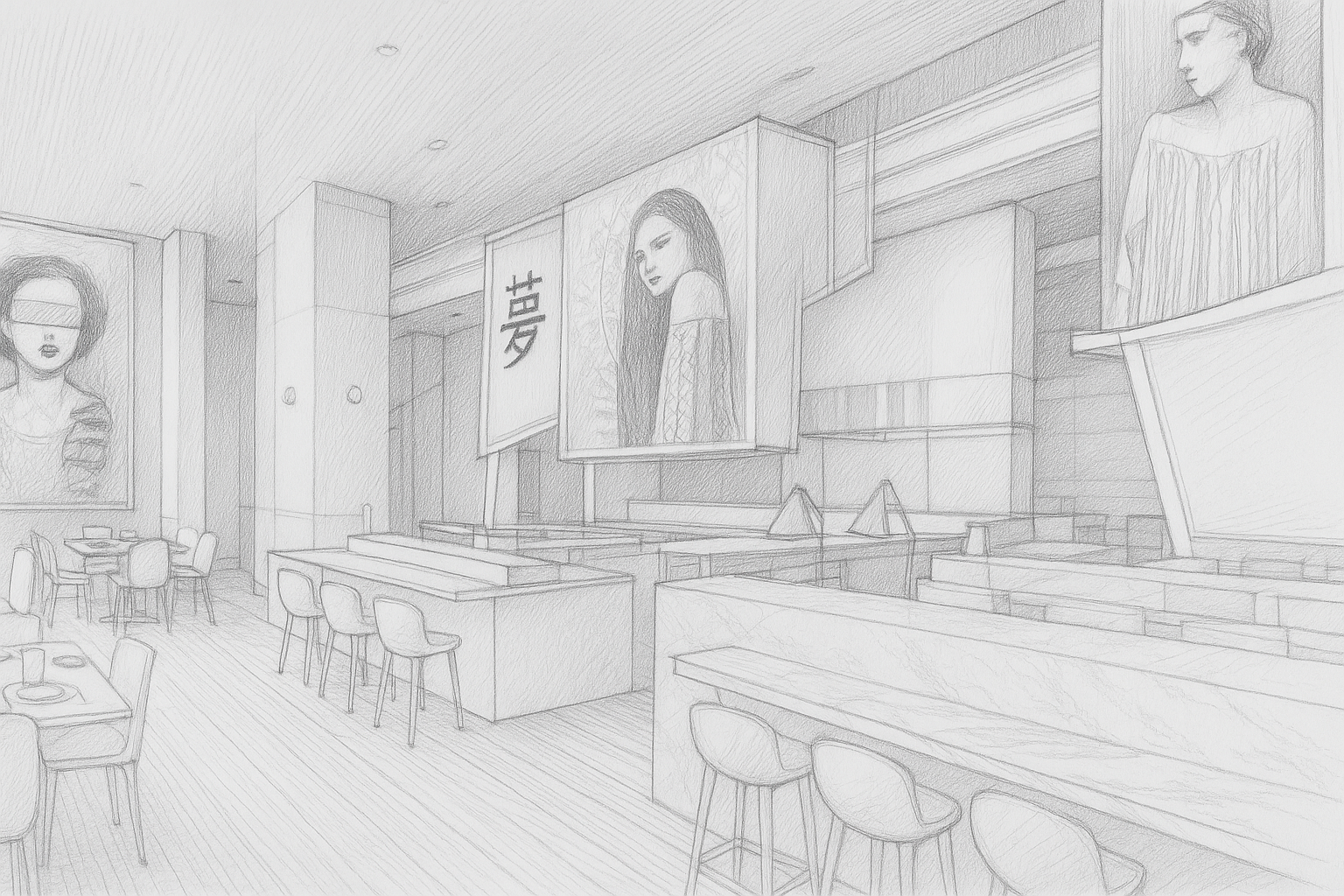 Walls are canvases for curated, large-format murals—some abstract, others fashion-inspired—each one paying homage to contemporary Korean visual culture. These punctuate the otherwise serene interior, injecting bold character without overwhelming the architectural integrity. Lighting, too, is purposeful: suspended linear accents and hidden cove lighting trace the geometries of the ceiling while remaining subdued during daylight hours, and glowing softly after dusk to amplify intimacy and elegance.