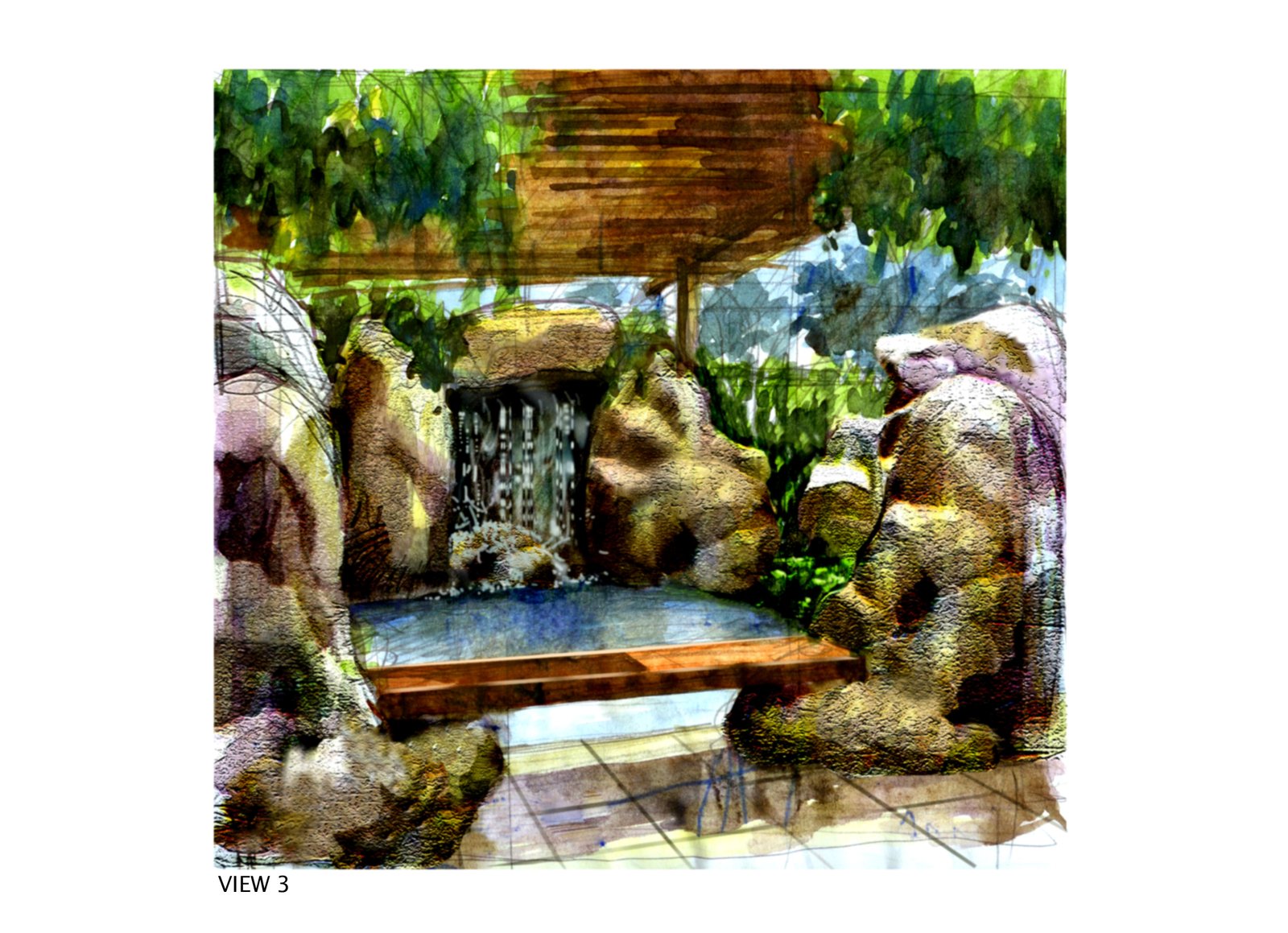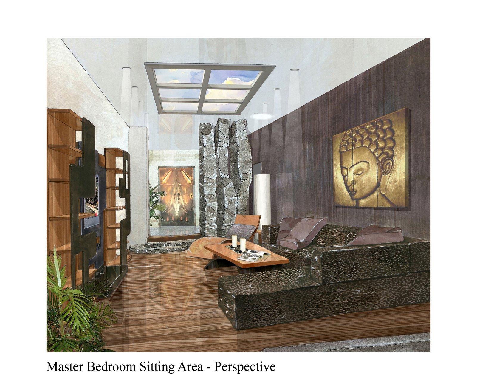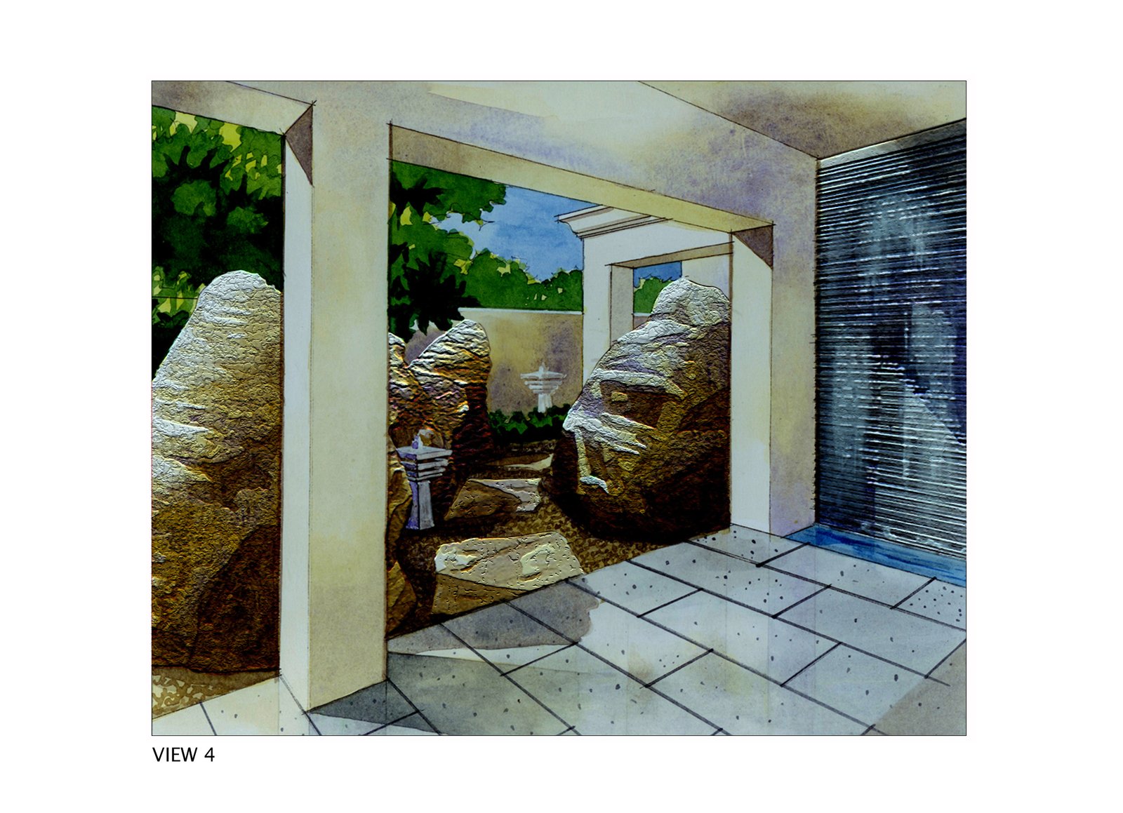 Each of the bedrooms is uniquely designed with custom palettes and luxurious materials. The master and guest suites incorporate textural wall finishes, full-height curtains, bespoke joinery, and private balconies with sweeping garden views. The highlighted Bedroom 3 uses rich tones of charcoal, dove gray, and stone tiling to evoke calm, sophistication, and tactile comfort.