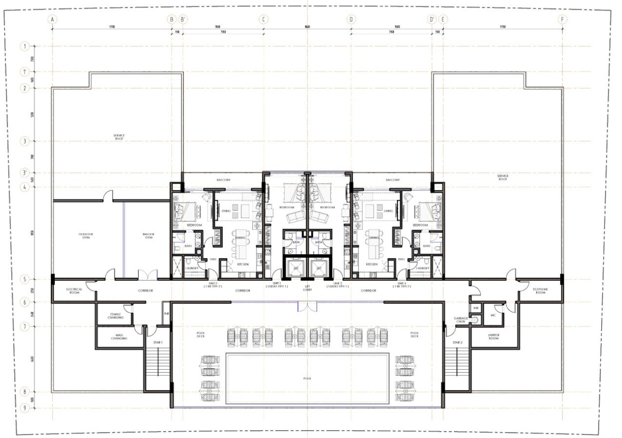 The development comprises 42 meticulously designed serviced apartments, supported by a dedicated reception area, private parking, and a stylish rooftop pool deck. The architectural concept integrates contemporary design language with efficient spatial planning, delivering a lifestyle-focused experience tailored to short- and long-term residents.