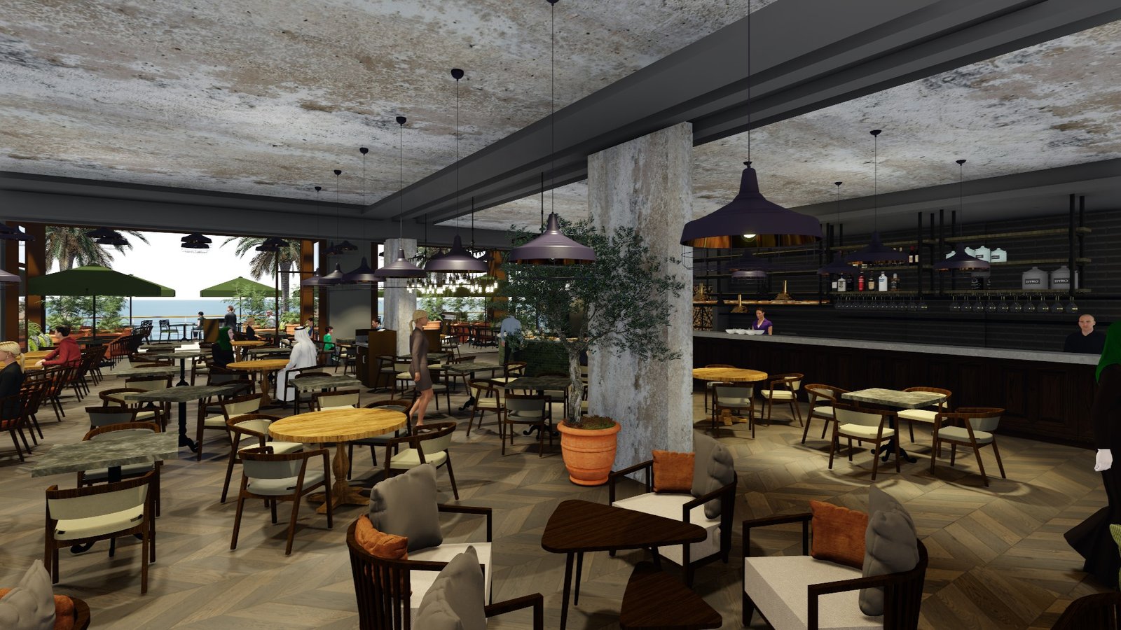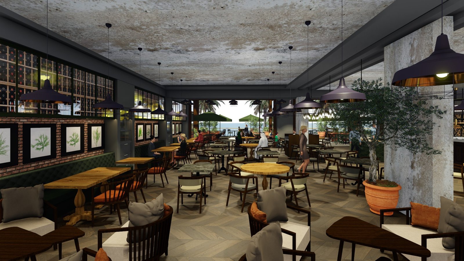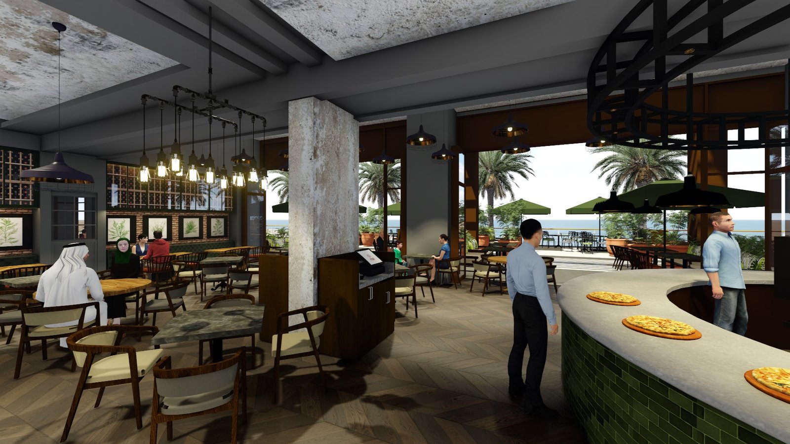 Nestled along the scenic shoreline in the heart of Dubai, Vapiano redefines casual Italian dining with a contemporary twist. Set within an expansive, sun-drenched space framed by floor-to-ceiling windows and beachfront terraces, Vapiano welcomes guests into a vibrant and relaxed atmosphere inspired by the modern Italian kitchen. The interiors blend rustic textures and raw materials—like exposed concrete ceilings, natural wood furnishings, and terracotta planters—with sleek modern finishes and lush greenery, resulting in a space that feels both earthy and elevated.